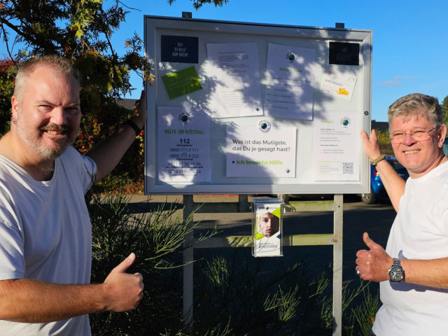 Zum 2. Geburtstag beschenken sich die Depri-Helden selbst, in dem sie im Kern von Bissendorf einen Schaukasten aufstellen. Ein Schaukasten an dieser Stelle ist keinesfalls neu, denn in der Vergangenheit versorgte die Verkehrswacht Wedemark hier Interessenten mit Informationen. Nun übernimmt der Selbsthilfeverein diesen Standort und installierte am heutigen Samstag den neuen, witterungsbeständigen Schaukasten mitsamt einer ebenfalls wetterfesten Flyerbox. In diesem Schaukasten will der Verein Informationen zu seinen Gruppe zur Verfügung stellen. aber auch auf Veranstaltungen aufmerksam machen. Schaut doch mal vorbei...!?