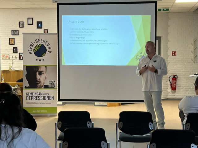Am Montag, den 22. April 2024 stand für eine Delegation der Depri-Helden ein Kennenlerntreffen mit Vertretern der Robert Enke-Stiftung auf der Tagesordnung. Gemeinsam ging es nach Barsinghausen, dem Sitz der Stiftung, wo den Gästen ein warmer und sehr herzlicher Empfang bereitet wurde. Stiftungsmanager Tilman Cassier begrüßte die Teilnehmerinnen und Teilnehmer persönlich und führte durch die Räumlichkeiten der Stiftung. Auch Geschäftsführer Jan Baßler begrüßte die angereisten Gäste persönlich und bemerkte sofort die Outfits der Depri-Helden. Bei einem Gesprächsaustausch auf Augenhöhe berichteten beide Seiten von ihren Aktivitäten und Plänen. Schnell wurde deutlich, dass die Aufklärungs- und somit Entstigmatisierungsarbeit psychischer Erkrankungen die oberste...