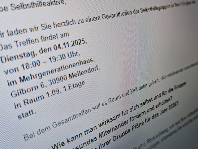 Die Kontaktstelle für den Selbsthilfebereich in der Wedemark, in Burgwedel und Langenhagen hat am 4. November zu einem Gesamttreffen eingeladen. Der gut besuchte Austausch-Abend war geprägt von den Sorgen und Gedanken der Gruppen hinsichtlich besserer Sichtbarkeit und Auffindbarkeit mit Unterstützung der lokalen Medien. Auch gemeinsame Aktivitäten wie ein Selbsthilfetag oder eine themenbasierte Messe waren Teil der Gesprächsrunde. Vor allem für das Netzwerken wurde der Abend gut genutzt. Die Gruppen wollen künftig enger zusammenarbeiten.